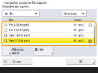 Ако типът на хартията, която сте заредили, не е наличен в екрана с подробни настройки, можете да го регистрирате в списъка с типове хартия. Настройки на управлението на типа хартия