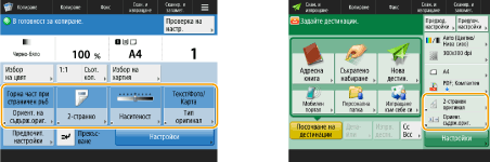 Можете да промените бутоните за настройки, които се показват в екраните с основни функции (за копиране, факс и сканиране). Можете също да показвате различен екран с основни функции, персонализиран за всеки влязъл потребител.