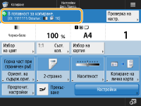Показва състоянието на настройката, като напр. съотношението на копиране, размера на хартията и броя на копията. Трябва да потвърдите настройките, за да копирате правилно. За да промените настройките, натиснете бутона под секцията за показване.