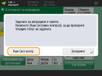 Ако изпратите I-факс към дестинация, която не поддържа режима на предаване, екранът <Сист. контрол> показва <Изчак на резултат...> дори и ако изпращането е завършено. Това съобщение се показва, докато изтече времето, зададено за <Таймаут за изпращане в Пълен режим>.