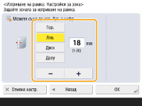 3 | Натиснете <Център> или <Страни> и въведете всяка от ширините за изтриване. |