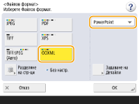 1 | Изберете <OOXML> изберете <PowerPoint> от падащия списък.![]() ![]() За да промените използвания език за OCR, натиснете <Задаване на Детайли> <Промяна> изберете езика натиснете <OK>. |