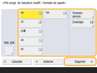 Carregue em <X> ou <Y> para introduzir o comprimento de cada lado com as teclas numéricas. ![]() Se gravar o formato de papel que utiliza frequentemente nos botões <S1> a <S4>, pode aceder-lhes com um só toque. Gravar papel de formato livre (Papel de formato personalizado) | |
