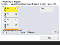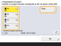 Se o tipo/formato de papel apresentado for diferente do tipo/formato de papel carregado, selecione a origem de papel onde o papel está colocado e carregue em <Prog.> .