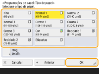 Se o tipo de papel colocado não for apresentado, carregue em <Prog. detalh.> para o selecionar a partir de uma lista.