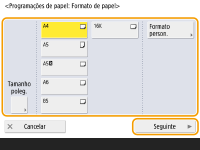 1 | Selecione a gaveta para papel onde o papel está colocado e carregue em <Formato personal.>. |