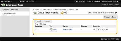 Pode utilizar a UI Remota para imprimir, enviar ou apagar faxes e I-faxes que estejam gravados temporariamente na Caixa de faxes/I-faxes.