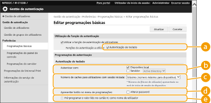 Selecione a caixa de verificação de [Autenticação do teclado].