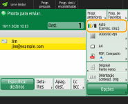 O endereço de correio eletrónico do utilizador que tiver sessão iniciada na máquina é especificado como o destino.
