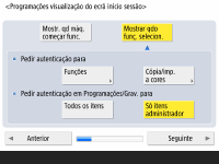 Não é possível iniciar o guia de configuração nos seguintes casos.Se a autenticação do utilizador ou a autenticação da ID de departamento estiver programada. Se a autenticação da ID de departamento estiver programada. Se a autenticação for efetuada com um cartão. |