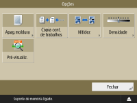 Configure as programações para impressão dos documentos lidos com maior clareza e eficiência. Ecrã Opções em <Aceder fich. guardados>