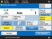 Este ecrã e apresentado ao carregar em <Opções> no ecrã de programações de impressão em <Aceder fich. guardados>. Permite-lhe configurar as programações para impressão dos documentos com maior clareza. As programações disponíveis poderão variar, consoante o formato do ficheiro a imprimir.