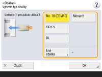 2 | Vyberte typ obálek. ![]() Stiskněte <OK> a přejděte ke kroku 5. |