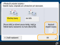 Pro přeskočení prázdných originálů bez ohledu na jejich barvu vyberte <Všechny barvy>. Pro přeskočení pouze bílých originálů vyberte <Jen bílá>.