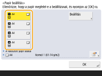Ha a megjelenített papírméret vagy papírtípus eltér a betöltött papírmérettől vagy papírtípustól, válassza ki azt a papírforrást, amelyben papír van, és nyomja meg a <Beállítás> gombot.