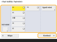 Válassza ki a papírméretet, és nyomja meg a <Következő> gombot.
