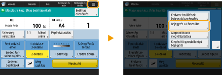 lehetőséget a másolási beállítások meghatározásához. <Főmenü> képernyő