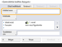 A <Újratovábbítás feltétel nélkül> opció választása lehetővé teszi az összes beérkező, a megadott feltételeket nem teljesítő dokumentum továbbítását a kívánt címre. A <Továbbítási cím> alatt címcsoportot létrehozva több rendeltetési helyre is továbbíthat. A <Továbbítás ideje> beállítással megadhatja a továbbítás napját és időpontját. Ha beállítja a <"Továbbítva" értesítés> opciót, akkor a készülék e-mailben értesíti Önt a küldés befejeződéséről. A <Csak hibánál értesít> beállítás esetén a sikeres továbbításokról nem kap értesítést. Ha a <Vett fájl tárolás/nyomtatása> beállításnál a <Be> lehetőséget választja, akkor a Memórialezárás beállításának megfelelően tárolhatja vagy nyomtathatja ki a beérkezett fájlt. Ha a Memórialezárás <Be> van kapcsolva, akkor a készülék tárolja, ha <Ki> van kapcsolva, akkor pedig kinyomtatja a beérkezett fájlt. |