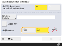 A készülék küldési hiba esetén is menti a dokumentum egy másolatát. A rendeltetési hely típusától függően az alábbi korlátozások lehetnek érvényben. E-mail: A készülék egy üzenet nélküli e-mailt küld. Fax/I-Fax: Az elküldött faxot nem lehet elektronikus fájl formájában menteni. |