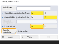 <Hiteles.kiszolg.tanúsítv. ellenőrzése>Ezt a beállítást hitelesítési kiszolgálóról küldött kiszolgálói tanúsítványok ellenőrzésekor <Be> értékűre állíthatja.