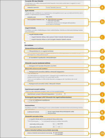 Ha az integrált hitelesítési funkciót csak azoknál a bejelentkezett felhasználóknál akarja letiltani, akik be vannak jegyezve az LDAP-szerveren, jelölje be a [Integrált hitelesítés letiltása az LDAP-kiszolgálói hitelesítés hitelesítő adataival] lehetőség jelölőnégyzetét.