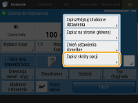 W przypadku funkcji kopiowania można zarejestrować skonfigurowane ustawienia ulubione jako skrót w obszarze <Skonfiguruj ulubio. ustawie.>.