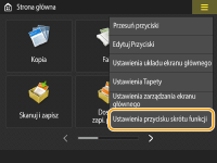 Na ekranie <Strona główna> możesz utworzyć przycisk skrótu do funkcji. Można skorzystać z tego przycisku, aby uzyskać dostęp do różnych funkcji bez konieczności powrotu do ekranu <Strona główna>. Aby utworzyć skrót, należy zalogować się z uprawnieniami administratora. Logowanie na urządzeniu