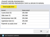Można sprawdzić pozostałą ilość materiałów eksploatacyjnych z poziomu interfejsu Remote UI (Zdalny interfejs użytkownika). Sprawdzanie statusu urządzenia |