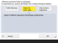 Folder osobisty jest folderem współdzielonym przez następujące ekrany. <Skanuj i wyślij> <Sieć> w <Skanuj i zapisz> <Sieć> w <Dostęp do Zapisanych Plików> |