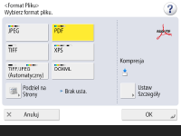 Po wybraniu opcji <PDF>, <XPS> lub <OOXML> można skonfigurować różne ustawienia dodatkowe.
