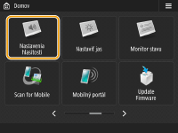 <Hlasitosť alarmu>Nastavte hlasitosť zvuku, ktorý zariadenie vydáva pri zrušení prenosu faxu alebo pri dokončení tlače prijatého faxu. Ak chcete tento zvuk vypnúť, jazdec