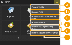 <Zakázať zobrazenie funkcie>: Vyberte funkcie alebo doplnkové aplikácie, ktoré sa majú skryť na obrazovke <Domov>.