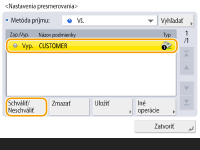 Ako miesto určenia presmerovania pre I-faxy nemôžete špecifikovať server WebDAV. Ak špecifikujete miesto určenia, pre ktoré je položka <Potvrdiť pred odoslaním> aktivovaná ako miesto určenia presmerovania, obrazovka na zadanie hesla sa nezobrazí. Použije sa uložené heslo a vykoná sa presmerovanie. Registrácia miest určenia Manipulácia s dokumentmi s chybami presmerovania sa riadi nastaveniami <Manipulácia so súbormi s chybami presmer.>. Uložiť môžete až 1 000 nastavení presmerovania. |