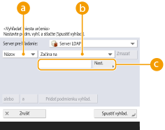 Pri vyhľadávaní miest určenia v serveri LDAP stlačte buď položku <Hľadať podľa mena>, alebo položku <Hľad. podľa podmienok>.
