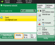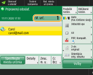 Obrazovka základných funkcií skenovaniaŠpecifikovanie miest určenia z adresára