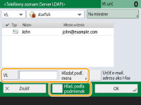 Pri vyhľadávaní miest určenia v serveri LDAP stlačte buď položku <Hľadať podľa mena>, alebo položku <Hľad. podľa podmienok>.