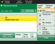 Obrazovka základných funkcií skenovaniaŠpecifikovanie miest určenia z adresára