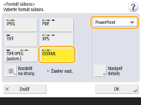 1 | Vyberte možnosť <OOXML> z rozbaľovacieho zoznamu vyberte možnosť <PowerPoint>.![]() ![]() Ak chcete zmeniť jazyk použitý pre OCR, stlačte tlačidlo <Nastaviť detaily> <Zmeniť> vyberte jazyk stlačte tlačidlo <OK>. |