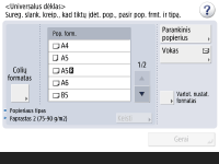 Jei rodomas ekranas, kuriame negalima nurodyti popieriaus formato ir tipoJei rodomas pranešimas, raginantis jus sureguliuokite popieriaus kreiptuvą, sureguliuokite popieriaus kreiptuvo plotį ir dar kartą paspauskite <Gerai>. |