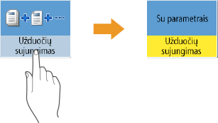 apatiniame dešiniajame kampe, kad matytumėte parametrų ekraną. Nustačius parametrą, parametro būsena rodoma viršutinėje mygtuko skiltyje, apatinės skilties spalva pasikeičia.