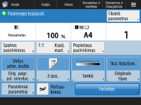 Paspauskite , rodomą ekrane <Pagrindinis> ir pagrindinių funkcijų ekrane, kad galėtumėte tinkinti ekraną, pavyzdžiui, pertvarkyti mygtukus ar sukurti sparčiuosius klavišus. Jutiklinio ekrano tinkinimas![]() Galite keisti ekrano rodymo parametrus, tokius kaip, kurį ekraną rodyti pirmą įjungus aparatą, taip pat ar rodyti pranešimą apie likusio popieriaus ir dažomųjų miltelių kiekį. <Rodymo parametrai> Galite nustatyti, kuris ekranas bus rodomas tam tikrą laiką neatliekant jokių operacijų. <Funkcija po automatinio nustatymo iš naujo> |