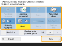 Kopijavimo funkcijai galite registruoti sukonfigūruotus parankinius parametrus kaip sparčiuosius klavišus iš <Iš anksto nustat. parankin. param.>.
