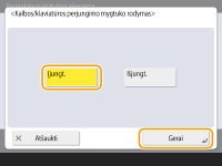 Jei pasirinksite <Įjungt.>, pasirodys jutiklinio ekrano apačioje. Šiuo metu rodomą kalbą galite pakeisti kita kalba. Tam paspauskite mygtuką <Kalbos/klaviatūros perjungimas>, pasirinkite norimą kalbą iš sąrašo ir paspauskite <OK>.