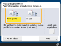 Jei dalyje <Spalvos pasirinkimas> pasirinktas ne parametras <Autom. (spalv./nesp.)>, atliekamos tokios pačios operacijos, kaip pasirinkus parametrą <Visos spalvos>, net jei pasirinkote <Tik balti>.
