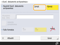 Dokumento kopija įrašoma net ir įvykus siuntimo klaidai. Atsižvelgiant į paskirties vietos tipą, gali būti taikomi toliau išvardyti apribojimai. El. paštas: išsiunčiamas el. laiškas be pranešimo. Faksograma / internetinė faksograma: išsiųstos faksogramos neįmanoma įrašyti kaip elektroninio failo. |