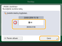 Įveskite išsiuntimo laiką ir paspauskite <Gerai>.