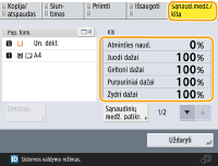 Prieš spausdinant didelį darbą rekomenduojama patikrinti dažomųjų miltelių lygį, kad žinotumėte, ar reikia pasiruošti naują dažomųjų miltelių kasetę.