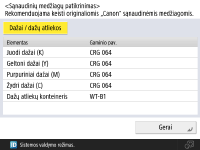 (Būkl. kontrolė), rodomas būsenos stebėjimo ekranas, kuriame galite patikrinti dažomųjų miltelių lygį arba kitus būsenos parametrus.