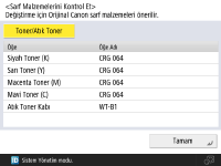 seçeneğine basın ve <Atık Toner> seçeneğini kontrol edin.