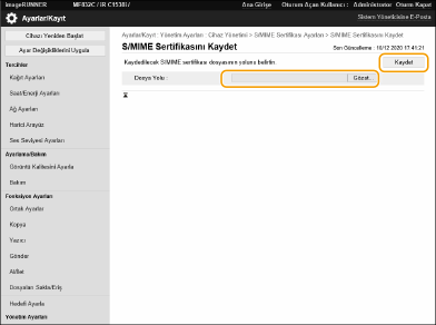[Gözat...] seçeneğine tıklayın, kaydedilecek dosyayı (S/MIME sertifikası) belirtin ve [Kaydet] seçeneğine tıklayın.